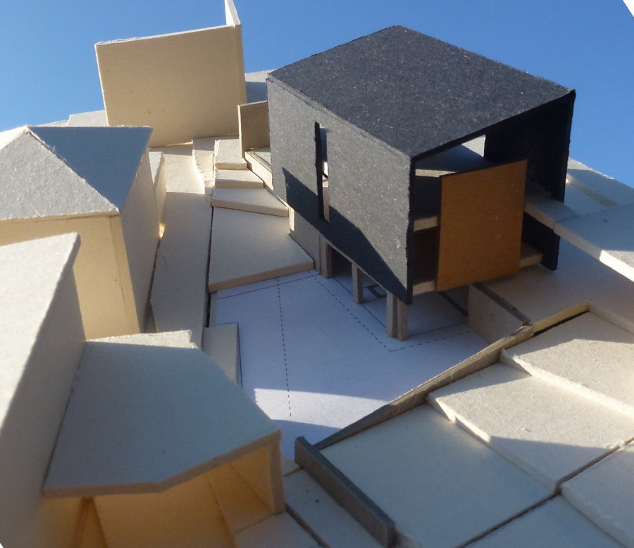 Ziel war ein moderner Baukörper mit leicht geneigtem Pultdach, der sich mit dem Hang verzahnt und im Baufenster so angeordnet wird, dass möglichst viel Gartenfläche zur angrenzenden Bebauung gebildet wird.